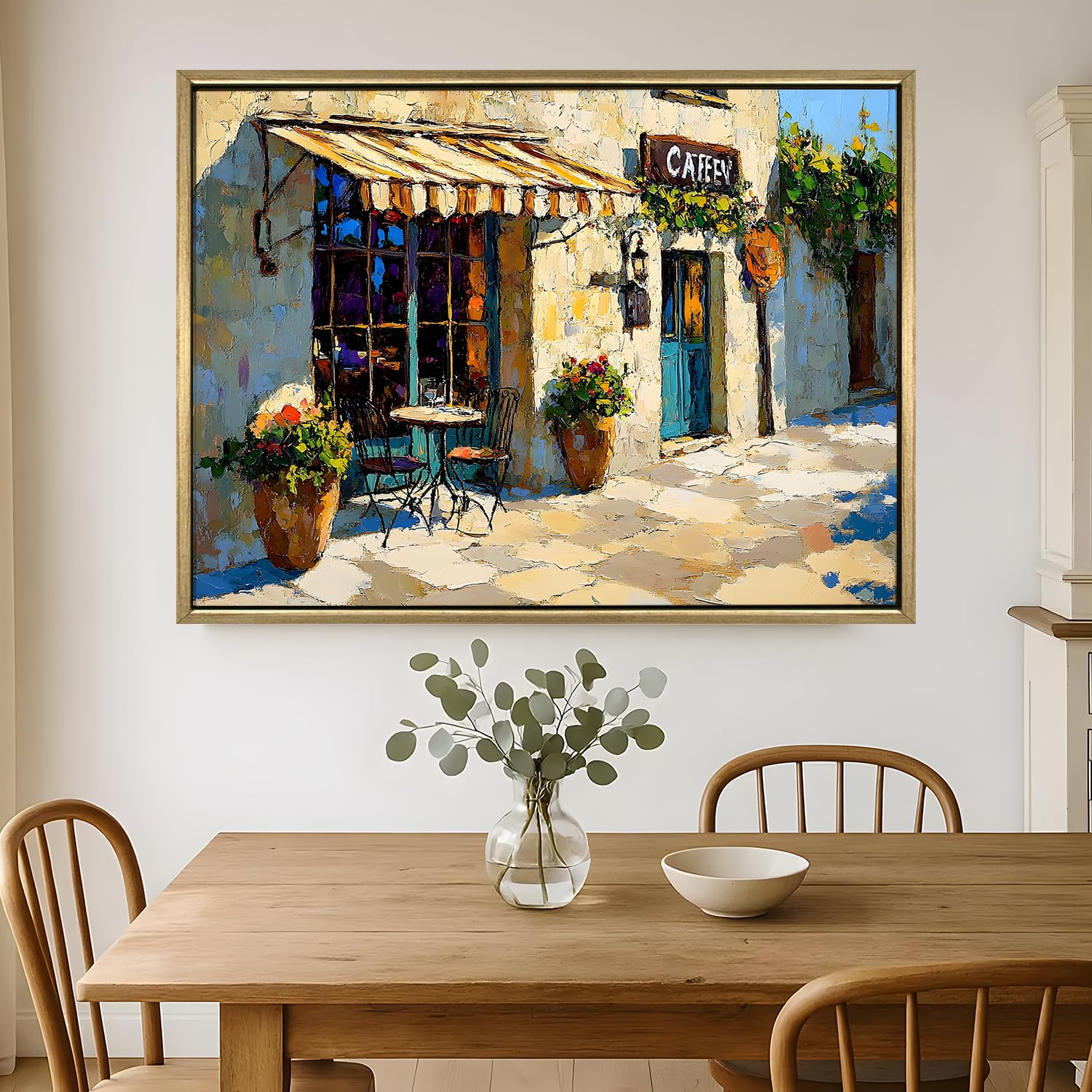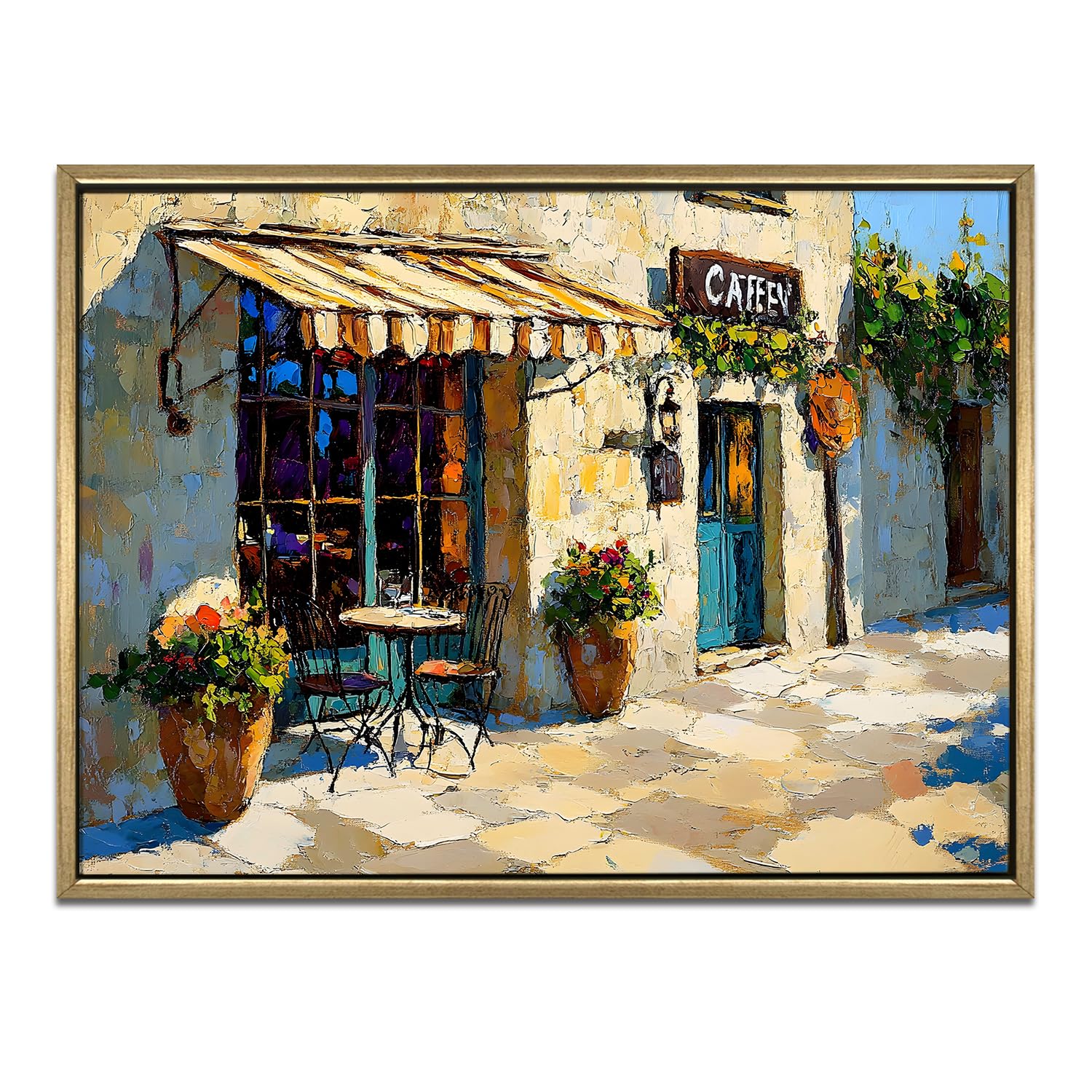 Artisan Café Courtyard – Impasto Oil Painting with Golden Frame (4ft x 3ft)